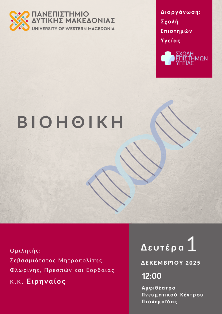 ΠΡΟΣΚΛΗΣΗ ΣΤΗΝ ΟΜΙΛΙΑ ΜΕ ΘΕΜΑ ΤΗ ΒΙΟΗΘΙΚΗ ΑΠΟ ΤΟΝ ΜΗΤΡΟΠΟΛΙΤΗ ΦΛΩΡΙΝΗΣ ΠΡΕΣΠΩΝ ΚΑΙ ΕΟΡΔΑΙΑΣ